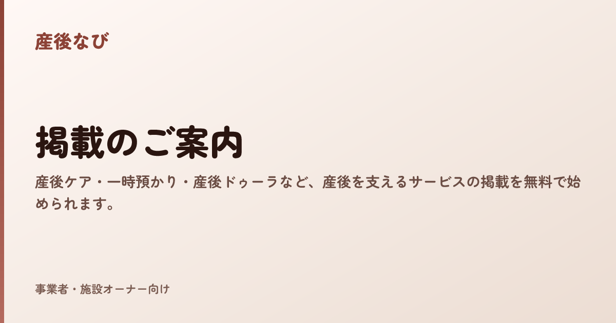 このたび産後なびでは、施設・サービス運営者の方向けに掲載のお申し込み受付を開始しました。